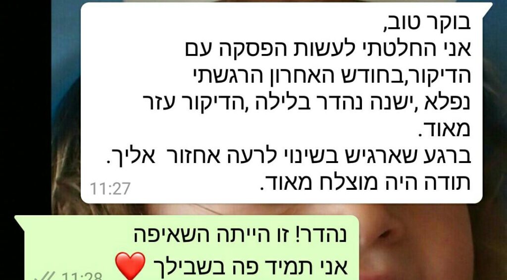 מטופלת מדווחת על השינוי החיובי והחזרה לשינה מצוינת בלילות לאחר דיקור סיני